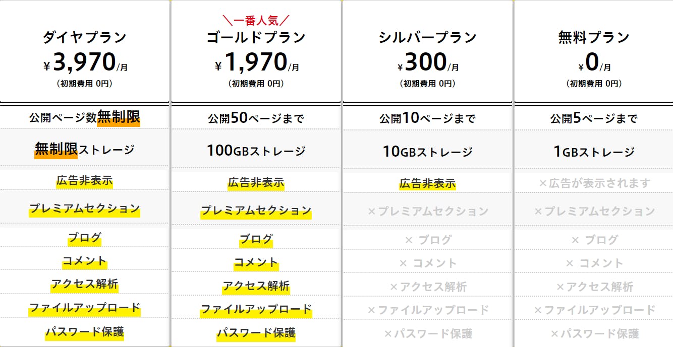ゴールドプランとダイヤプランです。