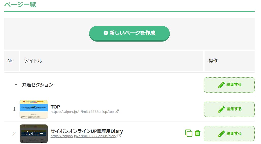 ページ一覧から各ページに入る