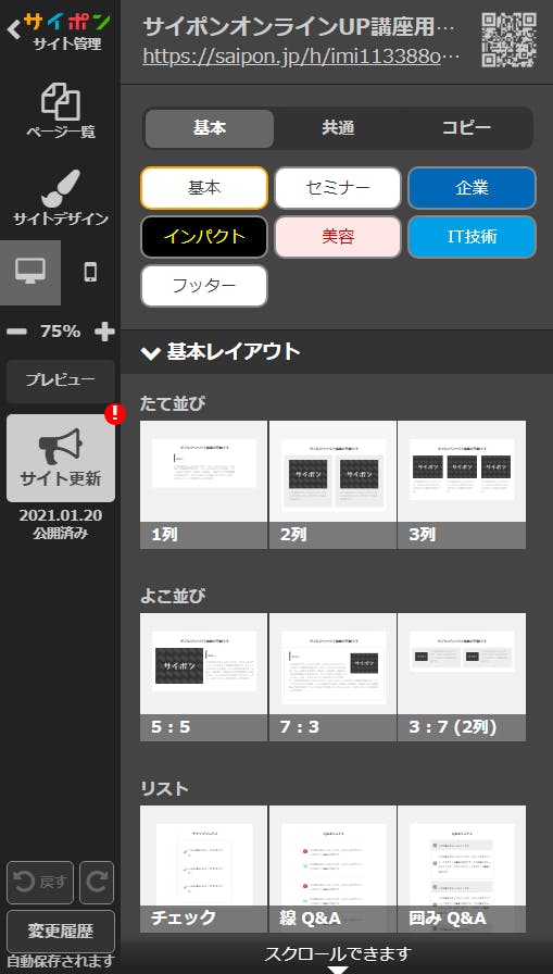 サイポンのサイト操作編集パネルで、