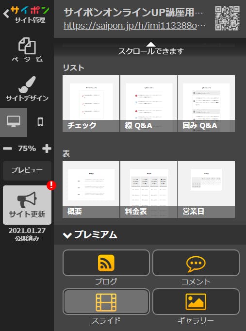 画像(レイアウト)下に、 スクロールできます。と表示されています。
