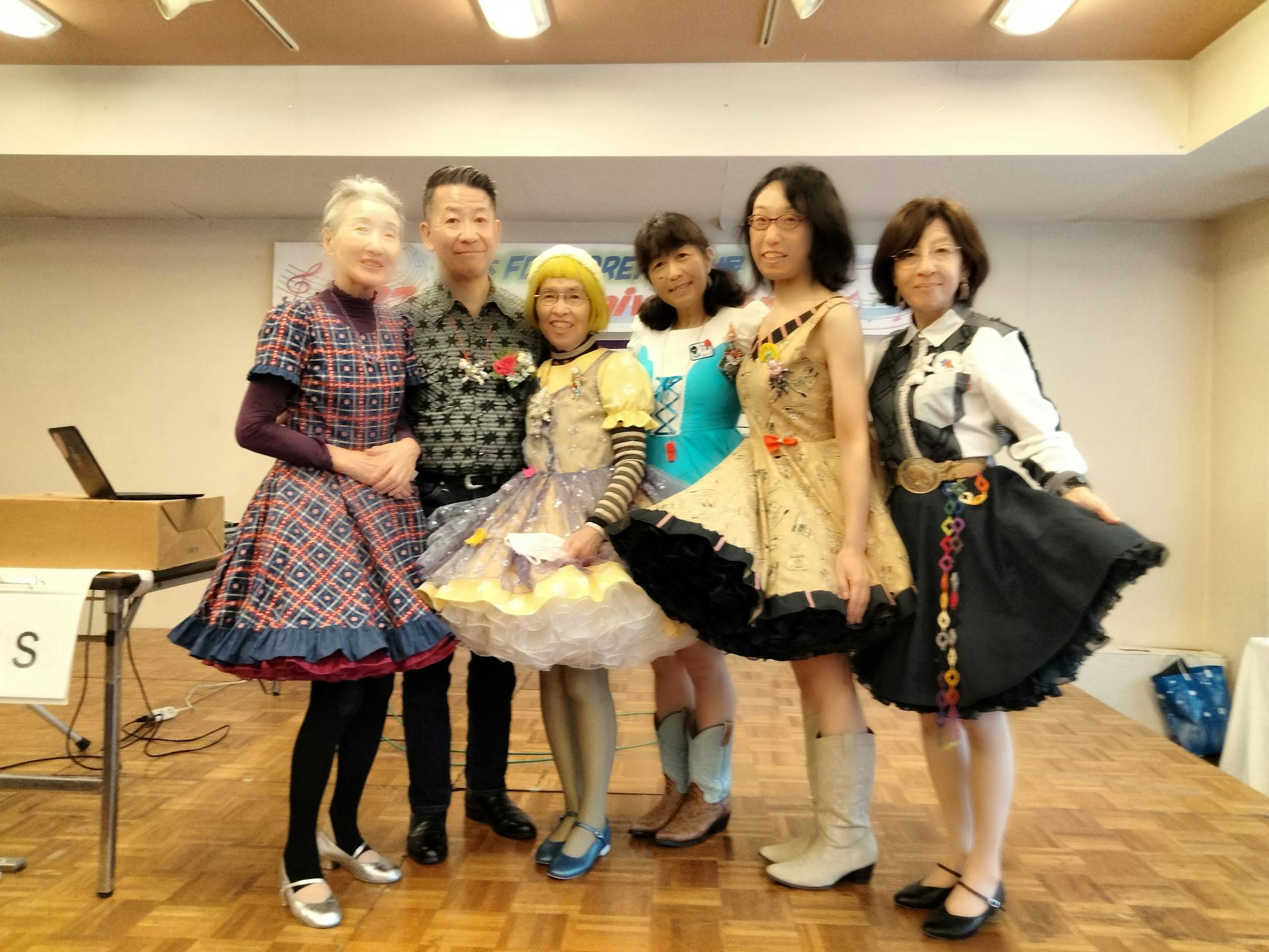 現在の即興性が特徴のモダンスクエアダンスと違い、昔のスクエアダンスは、決まった踊りを踊っていて、一般の方がイメージするいわゆるフォークダンスなのだと思います。ドレスの丈が長くてクラシックな衣装も現在とは違います。