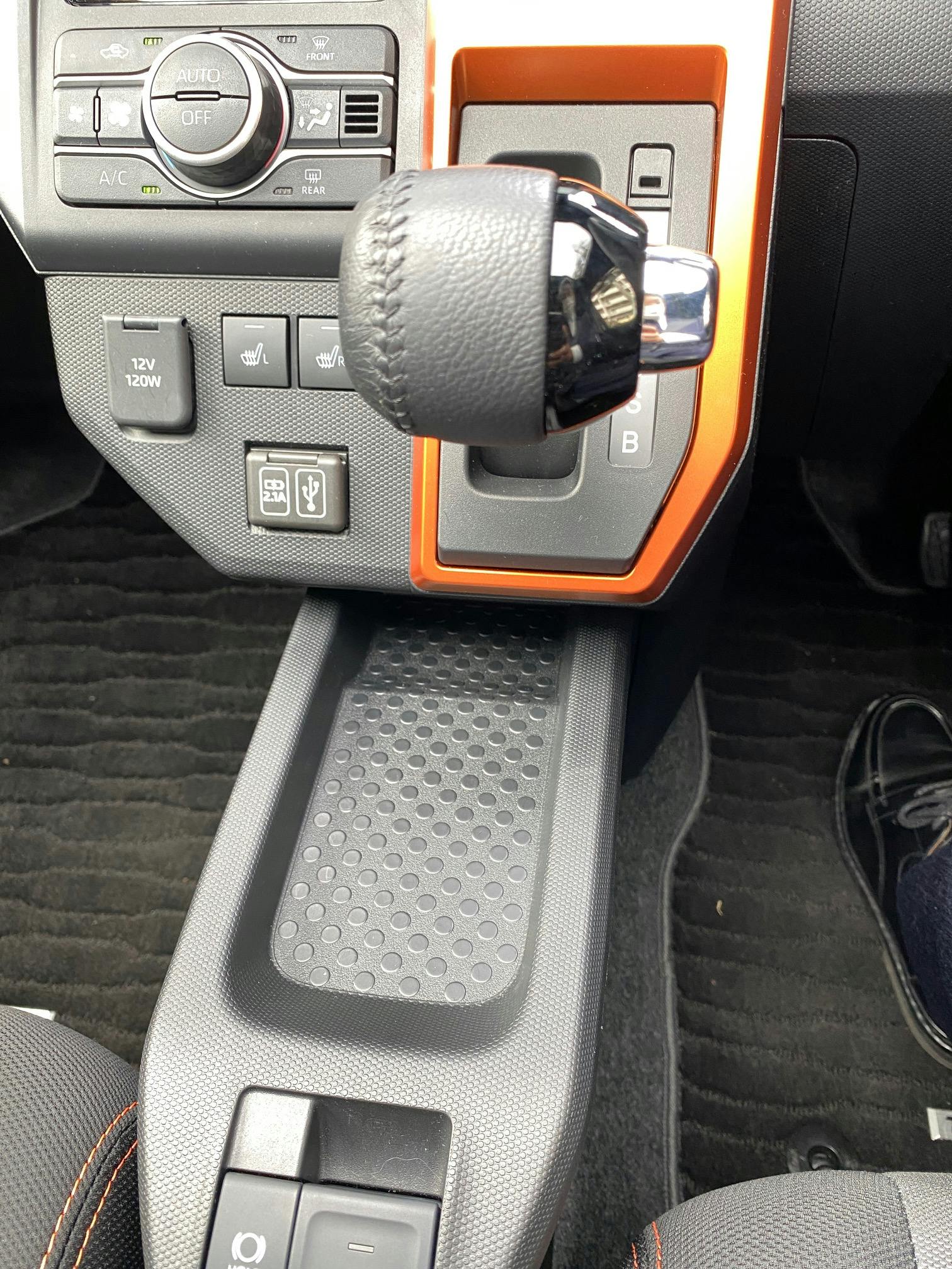 インパネ周りはスポーティな印象に振られていて、インパネシフトの下にスマホトレイが設けられていて、急ブレーキでも吹っ飛ばないのがありがたいです。