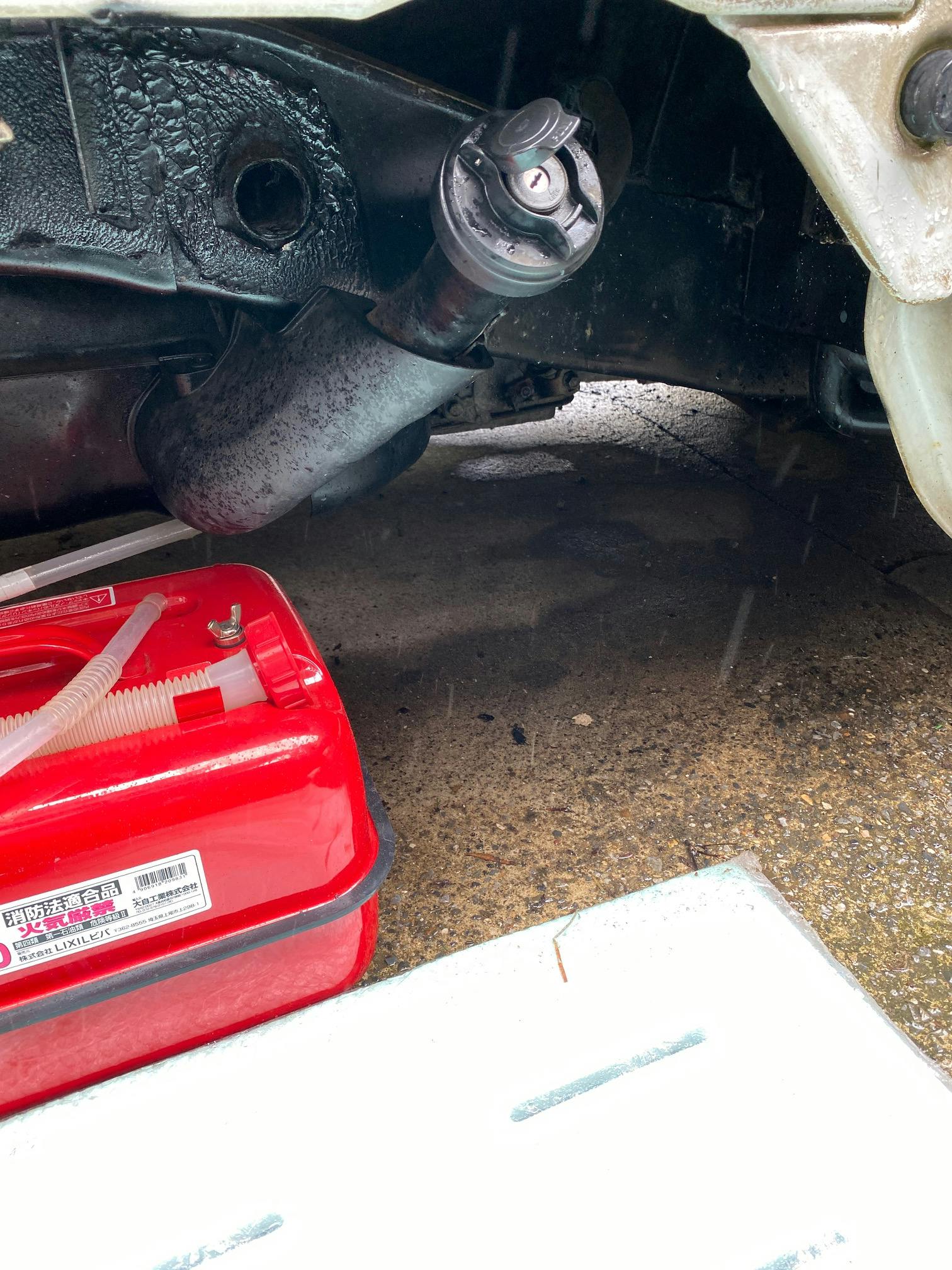 携行缶を用意して、燃料を抜きます。20Lの容量は必要