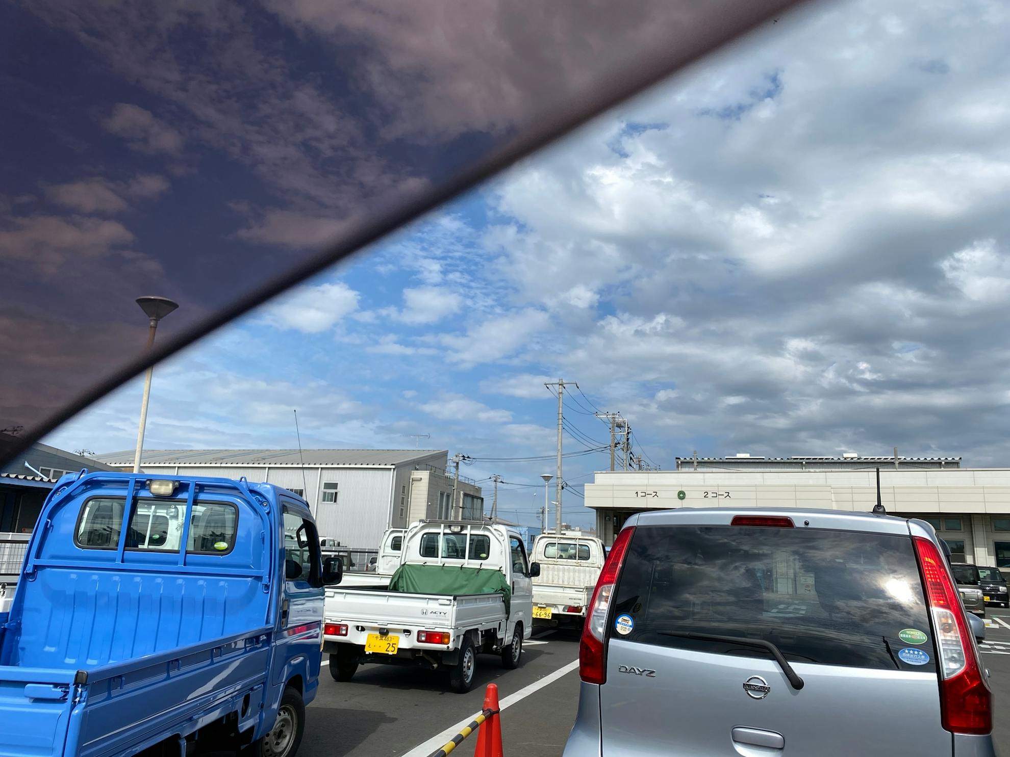 ラインに並んだところで、後ろから入ってきたベテランの整備士から右ストップランプの玉切れとホイールキャップ外し忘れを指摘してくれた上に電球まで分けてくれました。そのおかげで一発合格です。