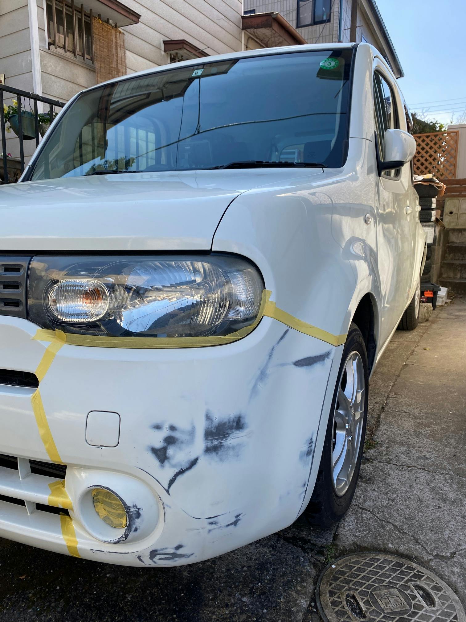 外装で前後バンパーの凹みや左サイドの擦り傷等傷のない面がないくらいの状態なので、これを見た目目立たなくする補修を行ないます。