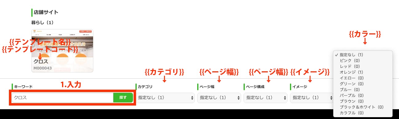 {{テンプレートコード}} →(テンプレートページからコピー) 例: M-------またはS------