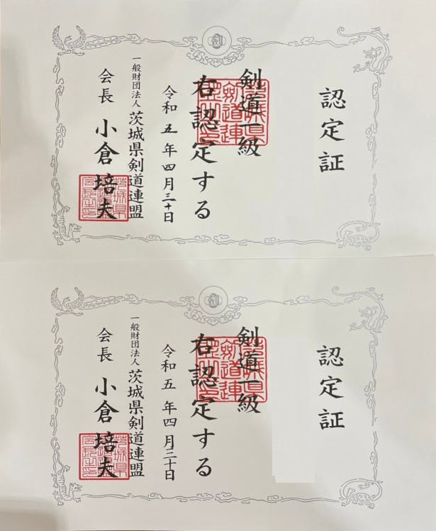 4/30(日)に龍ケ崎市で一級審査会が行われ、当剣友会からも小学6年生2名が参加しました。