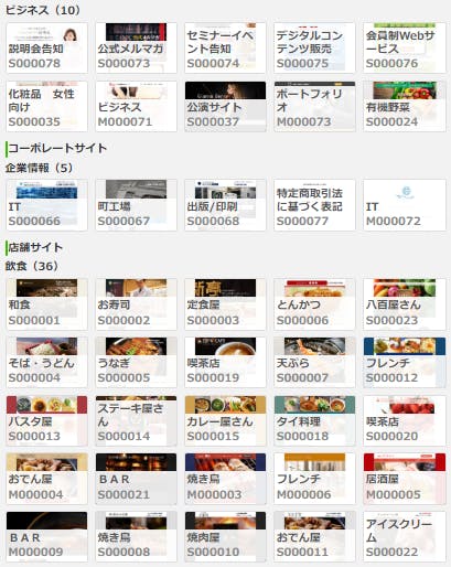 この「新規サイト作成」って所をクリックするとテンプレートが選べます。