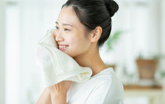 洗い流した後は、タオルを軽く当てるようにして水分をふき取ります。