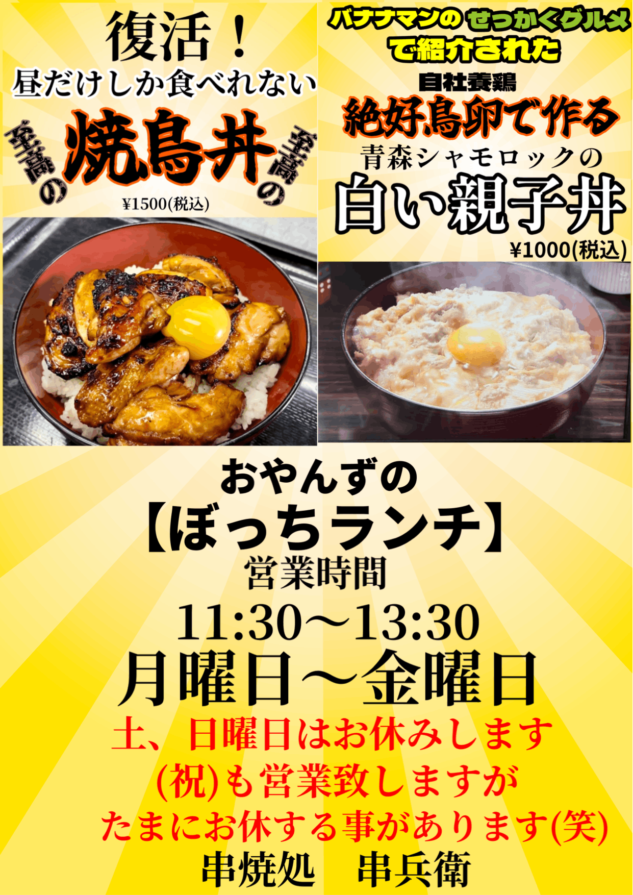 バナナマンのせっかくグルメに当店の白い親子丼が紹介されました