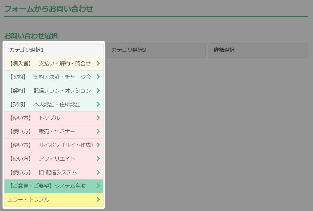 4.お問い合わせ内容に近い「カテゴリ」を選択