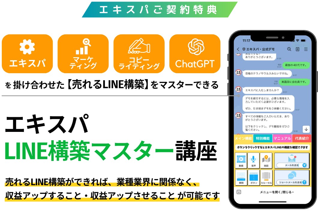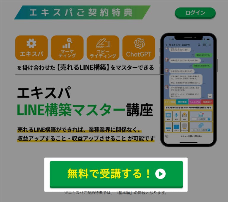 1章から一通りご確認いただきながら、エキスパの操作をしていただくことで、エキスパでのLINE構築が非常にスムーズに進みます。