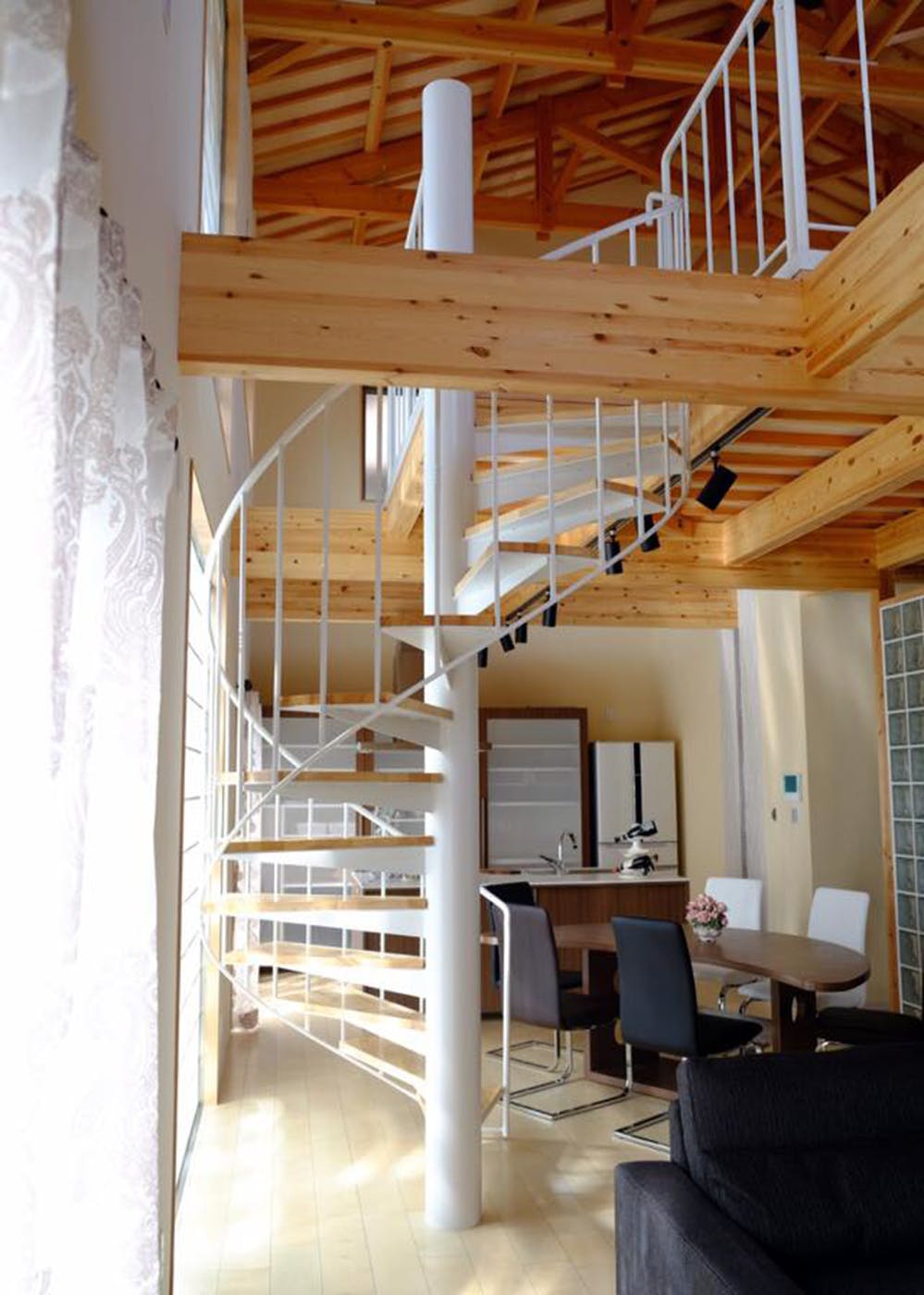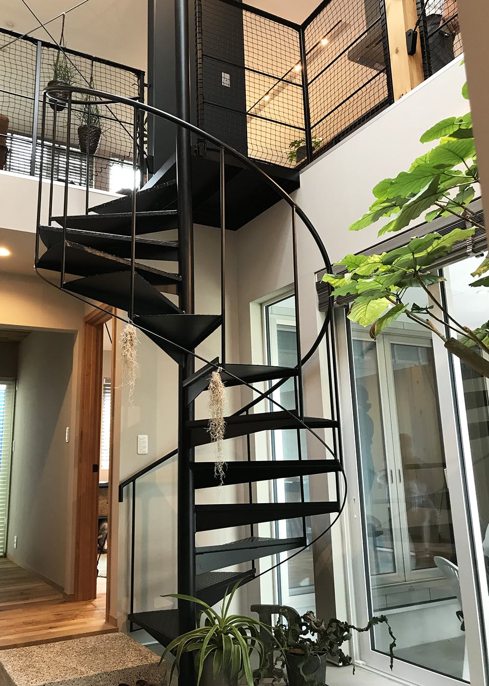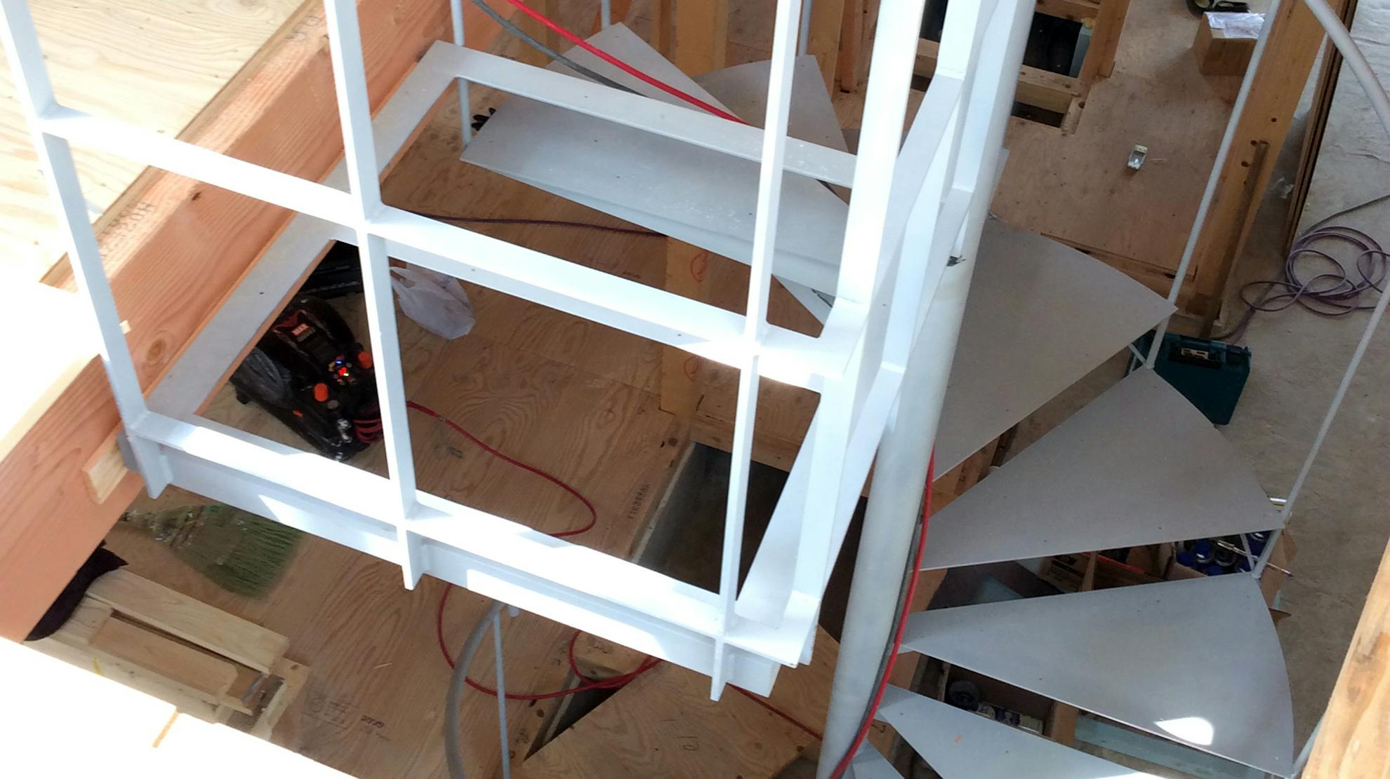 螺旋階段は、建て方の時に搬入します。そのため上塗りをしていては必ず傷がついてしまうので弊社ではグレー錆で納めています。