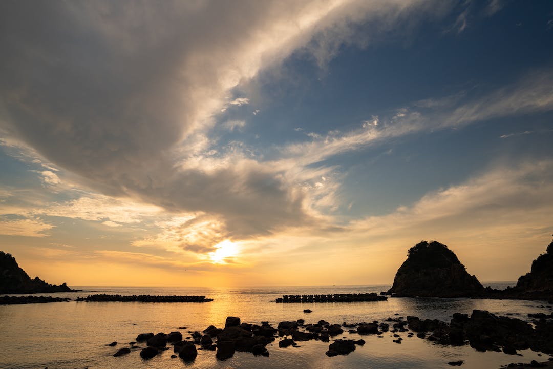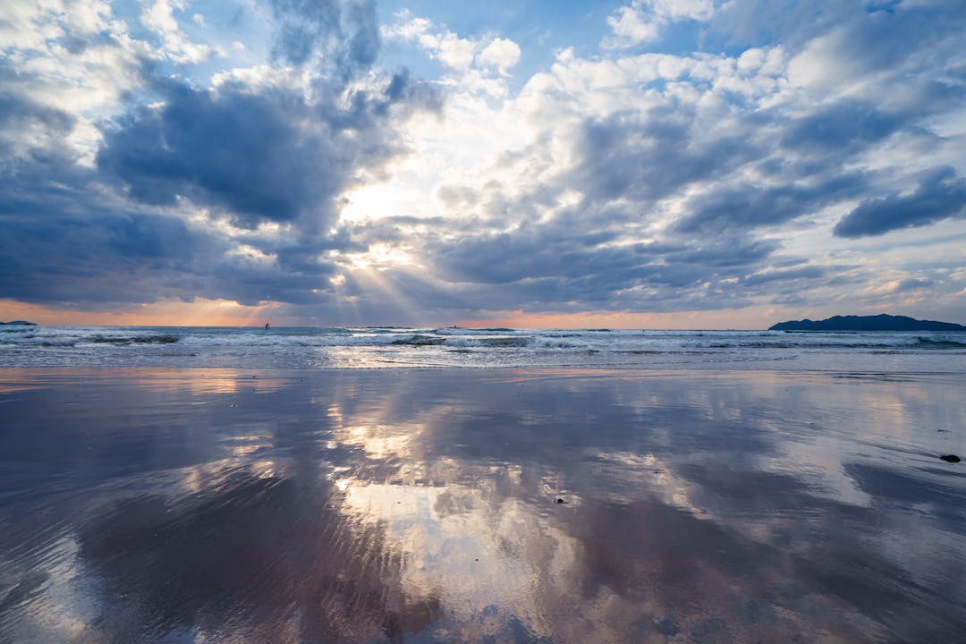 「国譲り神話」の舞台となった稲佐の浜。今でも旧暦10月10日には日没を待って、出雲大社の神職が全国から参集される 八百万やおよろず の神々をお迎えする「 神迎神事」がこの稲佐の浜で執り行われています。訪れたのは今回で二回目ですが、稲佐の浜は夕日の絶景地だったのですね。