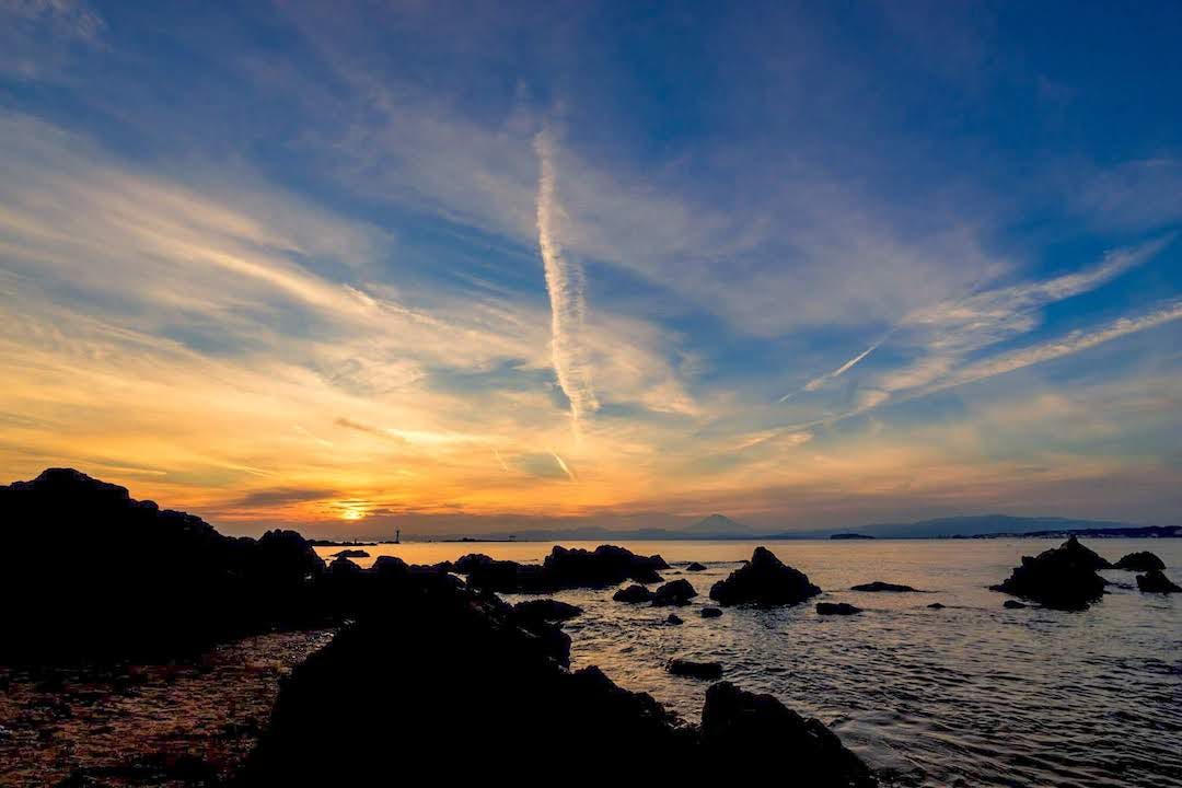 鵠沼海岸 シルエットに浮かぶ富士山 今日も穏やかに無事に一日を終えることが出来ました。美しい景色を見せてくれてありがとう自然とそんな思いがあふれて来る