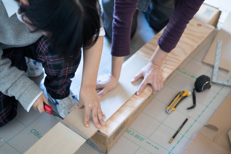 道具の使い方を教えてもらいながら、娘のDIYスタート。