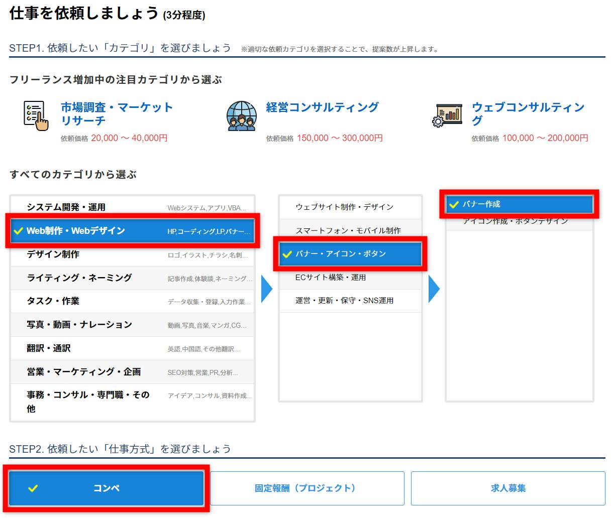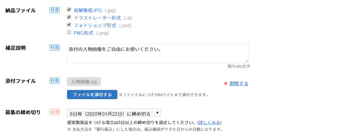 コンペの場合は「参加報酬」があるかないかも気にしているポイントです。また今後も継続して仕事を依頼する可能性があるなら「継続あり」も響くと思います。