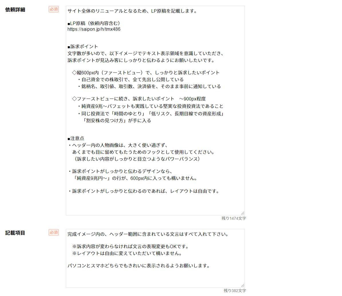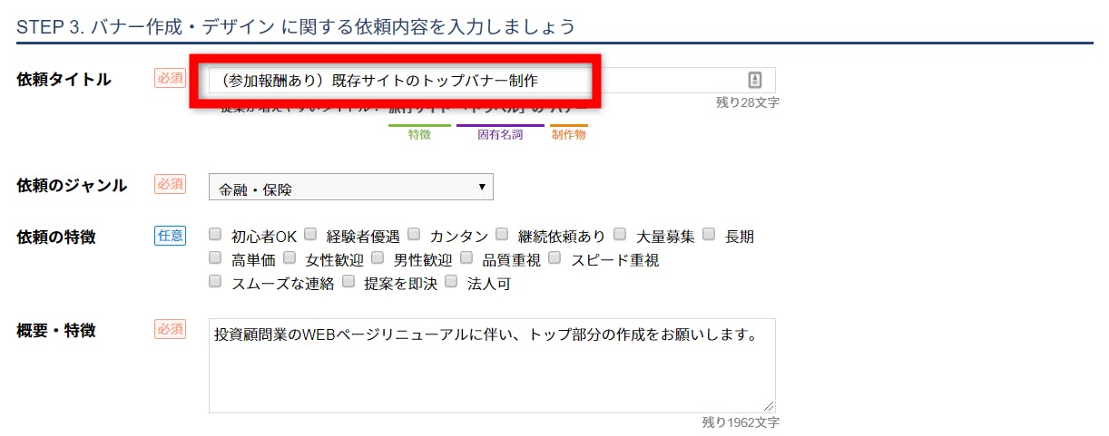 依頼タイトルはメルマガや、LPのヘッドコピーと同じ考え方です。