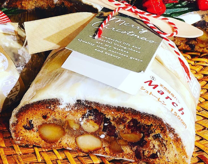カリフォルニア産のオーガニックのクランベリー、クルミを生地に練り込み、スティック状のよつ葉クリームチーズを入れています。
