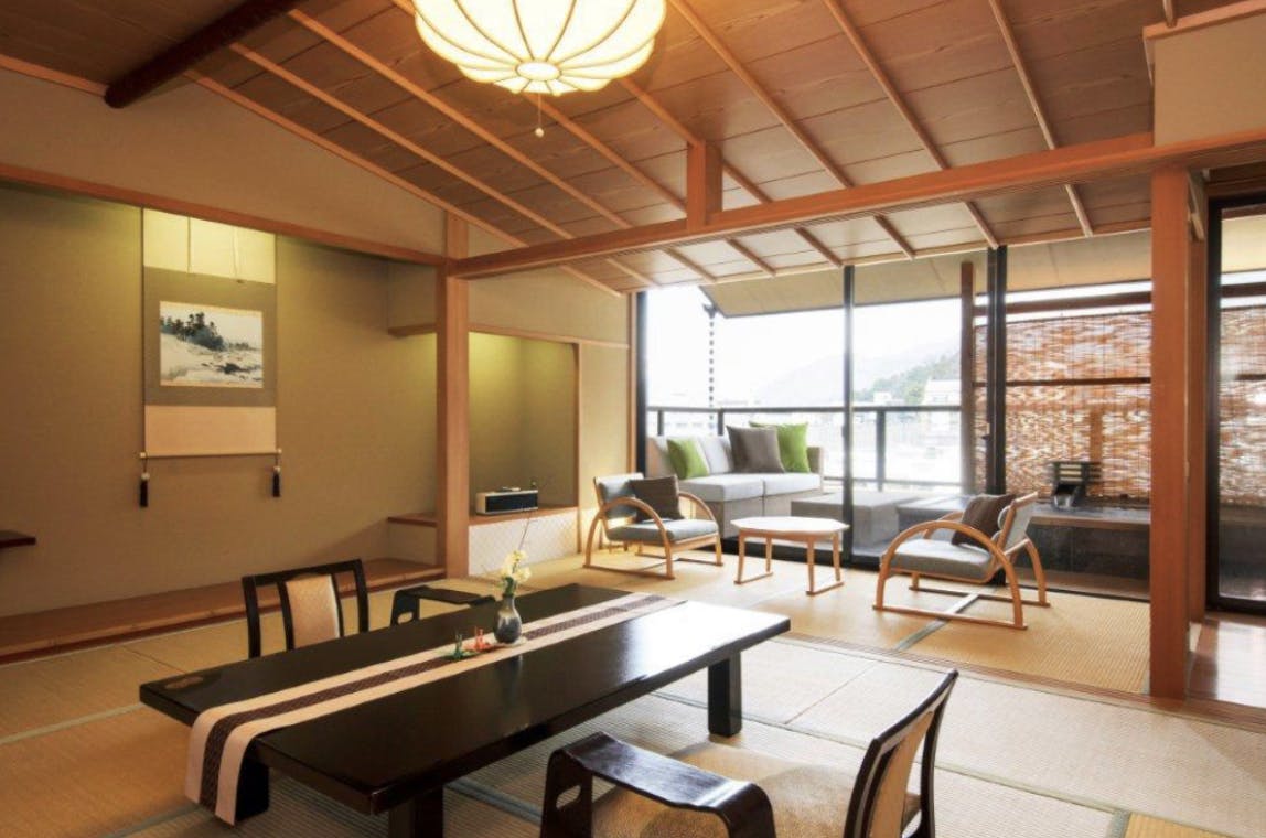 広々とした解放感のある客室にかけ流し露天風呂がついた贅沢なお部屋。いろりダイニングのある温もり感じるお部屋や
