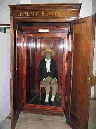因みに、死後ベンサムの遺体は、彼が遺言書で要求した通り、保存され、服を着て杖を持ち椅子に座った状態でユニヴァーシティ・カレッジ・ロンドンで木製の棚に保管されたそうで…、その後のことはwikiとか読むと分かるかと思います。