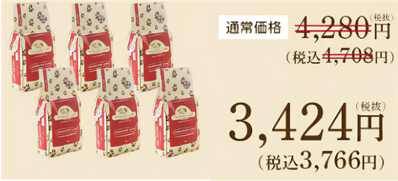 送料は3袋以上から無料で2袋までは別途704円かかってしまうものの楽天でそもそも売ってなかったりAmazonだと5,000円以上で取扱されてるなか公式ホームページなら毎回ずっと割引された最安値で買えるのは嬉しいですね。