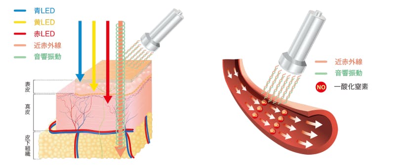 グロッティプロの音響振動によってゆらぎが発生するため細胞膜を通過しやすくなり、それに加えて約23㎝奥まで届く近赤外線で液剤をより深い細胞まで導入することができます。注射でお肌へ液剤を注入するのとほぼ同じレベルでお肌へ浸透させてくれる医療グレードのマシン。