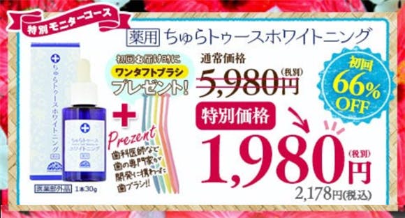 ⇒「ちゅらトゥース」公式サイトで初回66%OFFの内容を確認する