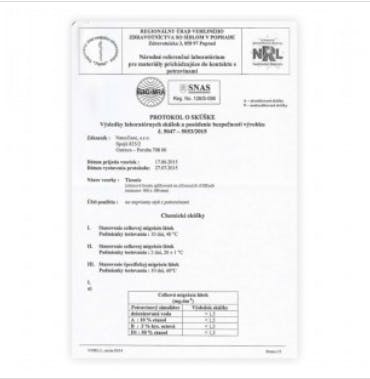 In cooperation with the RÚVZ in Poprad, our company has obtained protocols that reliably verify the safety of nano material.