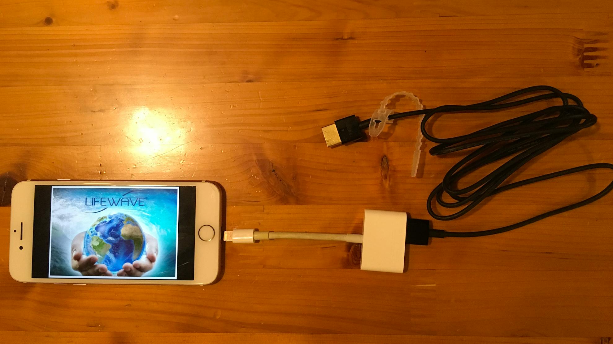 iPhoneの場合、このような変換ケーブルとHDMIケーブルでTVやプロジェクターに接続できます。