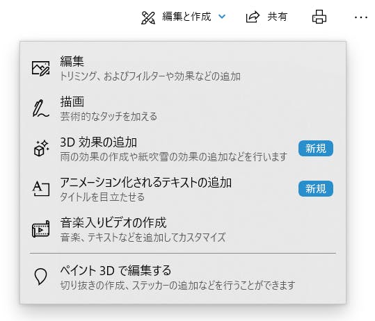 ※写真ファイルを開いて、「編集と作成」の「編集」でできます。