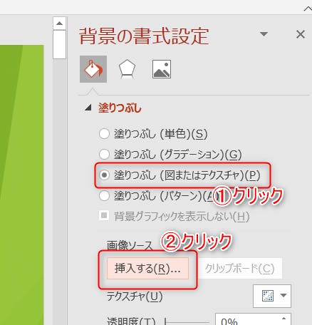 『塗りつぶし(図またはテクスチャ)』をクリックし、