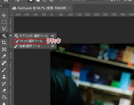 左側のメニューから、『クイック選択ツール』をクリック。