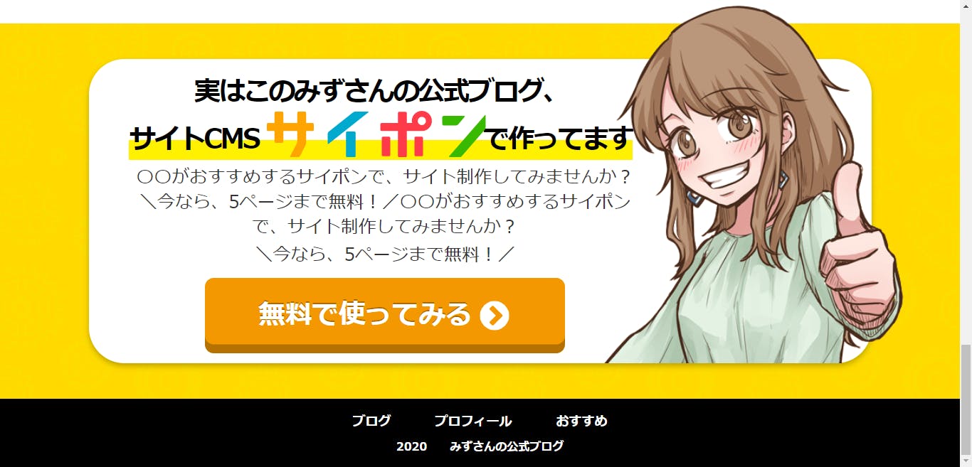 \今なら、5ページまで無料!/〇〇がおすすめするサイポンで、サイト制作してみませんか?