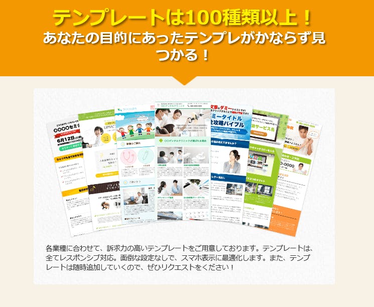 デザインセンスがなくても100種類以上のテンプレートが用意されているので、誰でも高品質のサイト作成が可能に