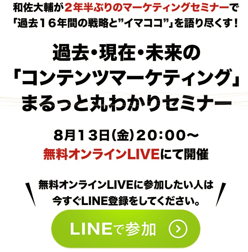和佐のこのセミナーは、8月13日の夜8時からです。
