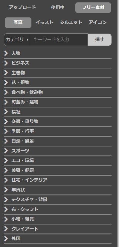そこから選ぶだけで、お望みの場所にフリーの画像を入れることができるのです。