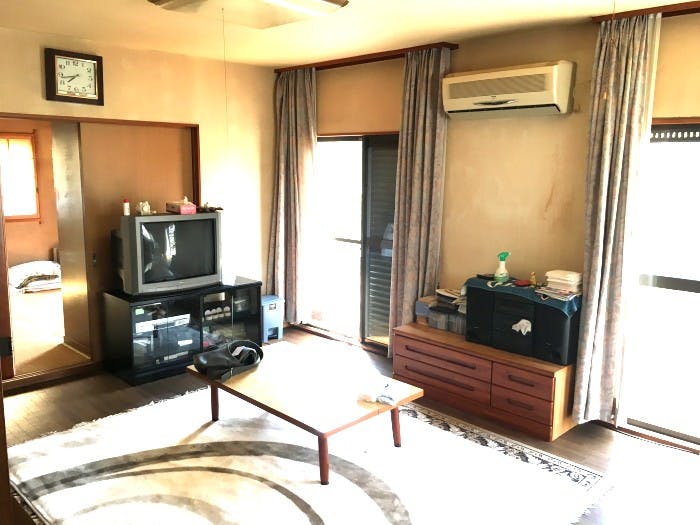 ご相談内容:10年以上空き家の実家をそのまま売却したいとご相談。お庭の物置や荷物、室内の家具家電・衣服生活品すべてそのままで弊社にて買取りさせて頂きました。