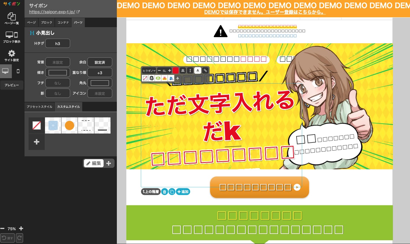デモなので、とりあえずいろんな部分をいじくり回してみてください。