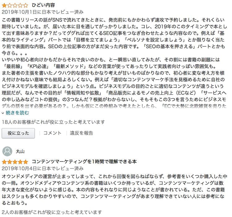 写真も1つの本に対してですが、これだけ評価が違います。(競合他社潰しもあるとかないとか…)