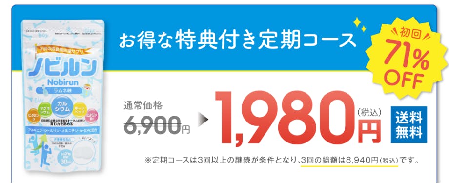 ノビルンの場合、定期コースにすれば税込でも3,000円台で続けられるため、このようなサプリメントの中では価格面でも比較的手軽に続けることができます。