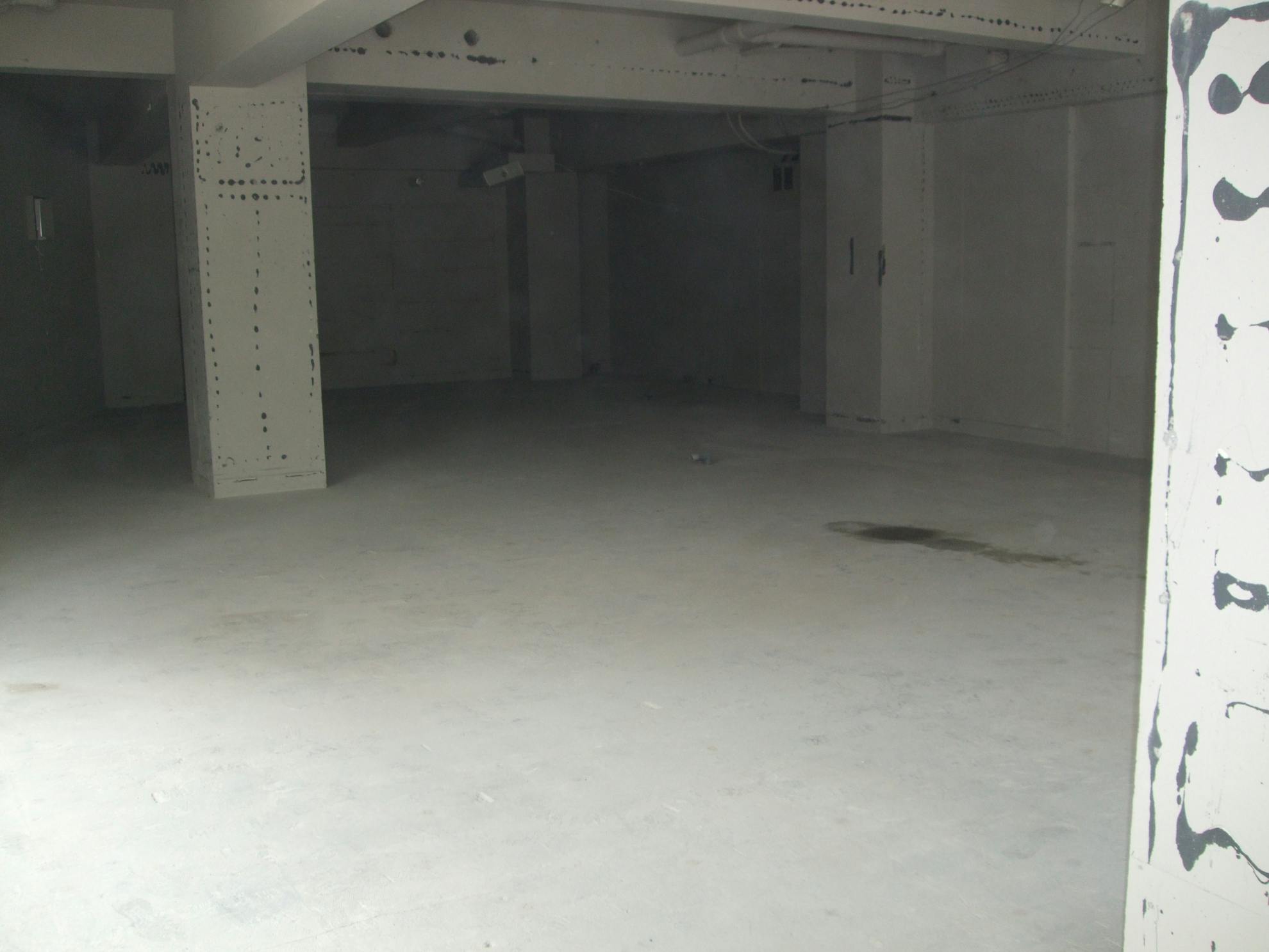 店内スケルトン、床タイル撤去後一部補修、電気、排水、処理共原状回復工事終了写真、その他外部タイル補修の原状回復も施工致しました。