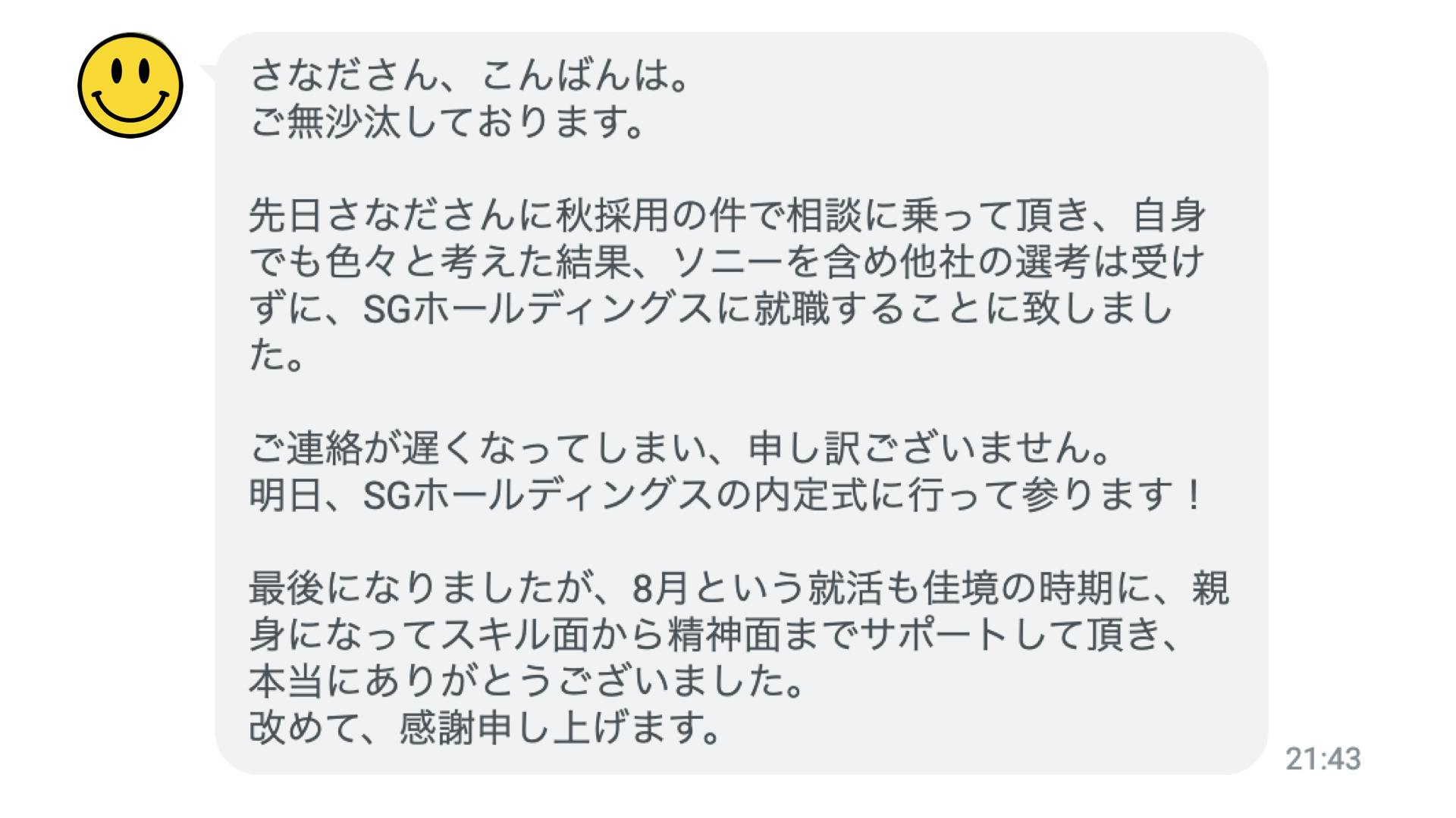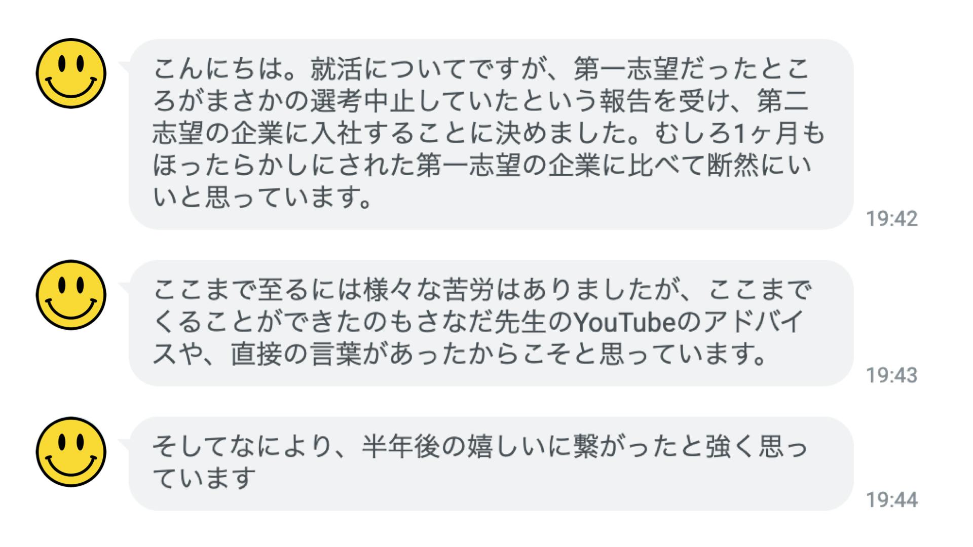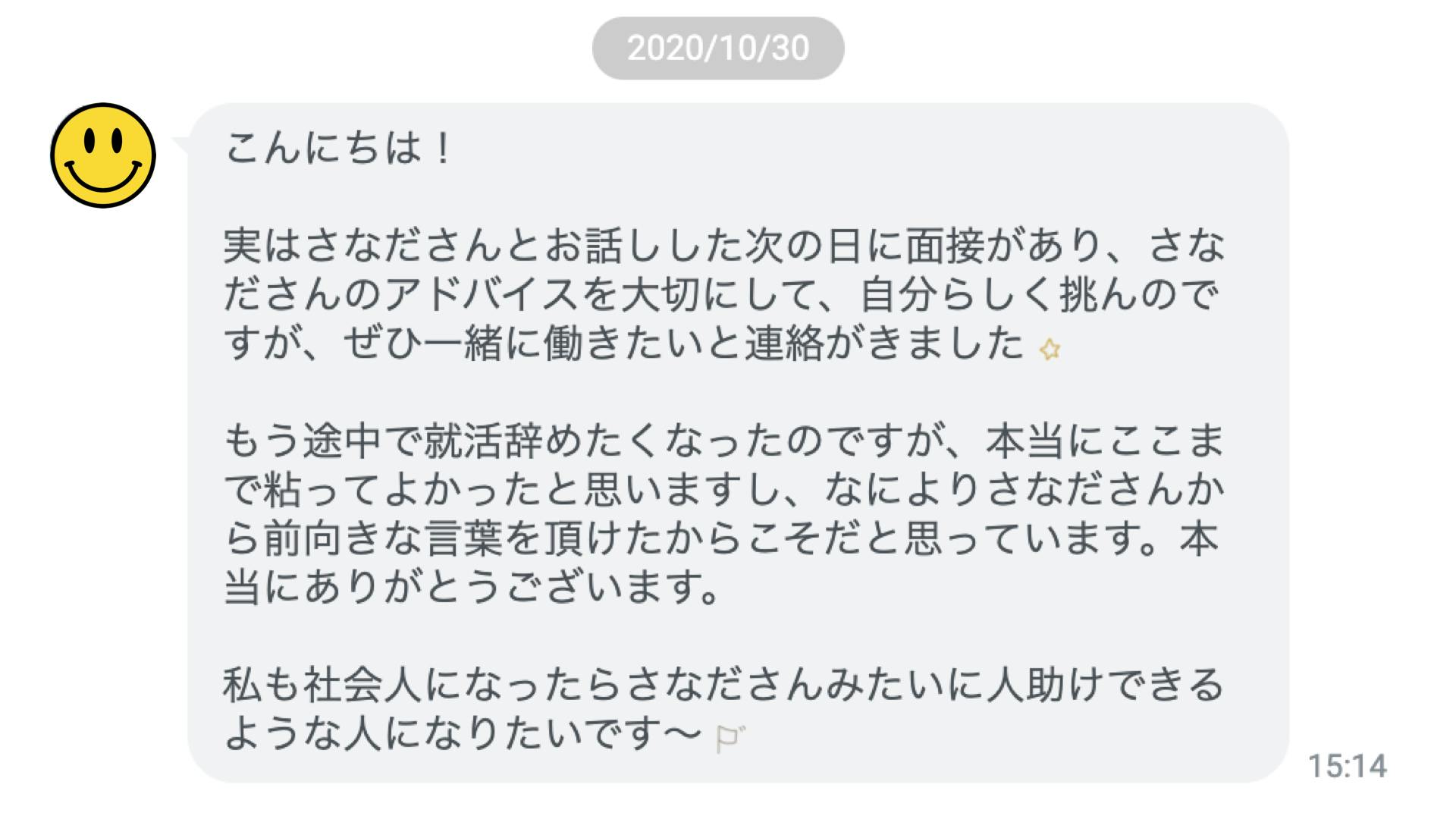 私が最も望んでいることは、あなたが内定を最短距離で獲得することができる自信を取り戻してもらい、