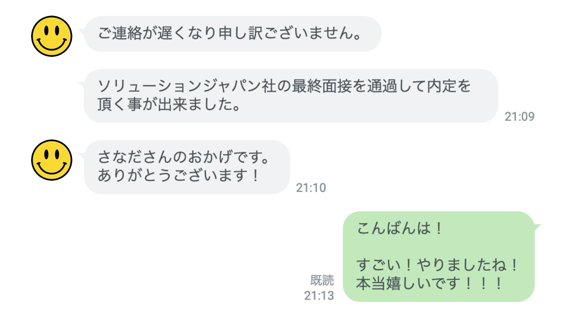 卒業後の28歳の時に、やっと大手企業へ転職することができました。
