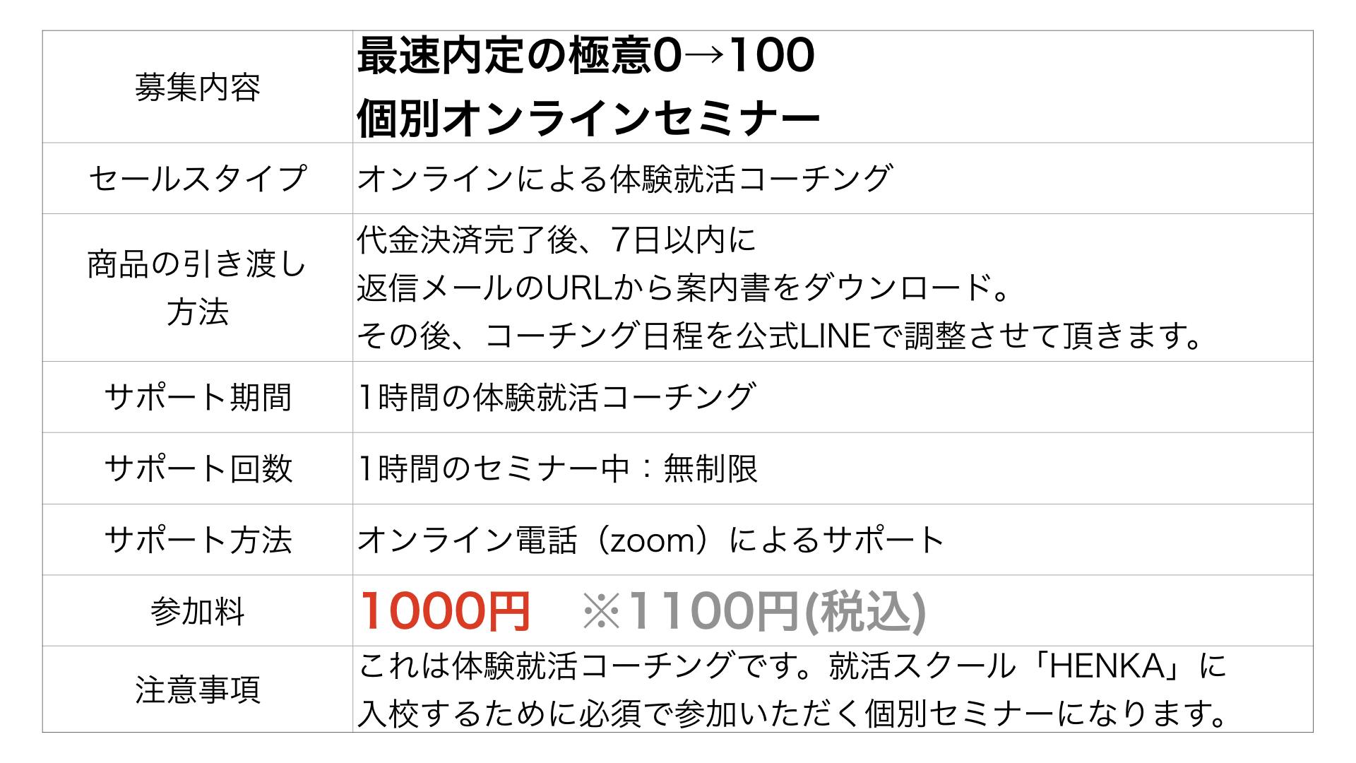 最速内定の極意0→100個別オンラインセミナーの申込と決済が完了した方は、
