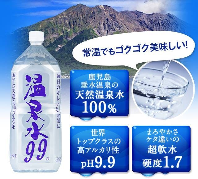 温泉水99は、鹿児島県・垂水温泉の地下水を採水したナチュラルミネラルウォーターとして知られ、SNSやレビューサイトにも多くの投稿が寄せられています。
