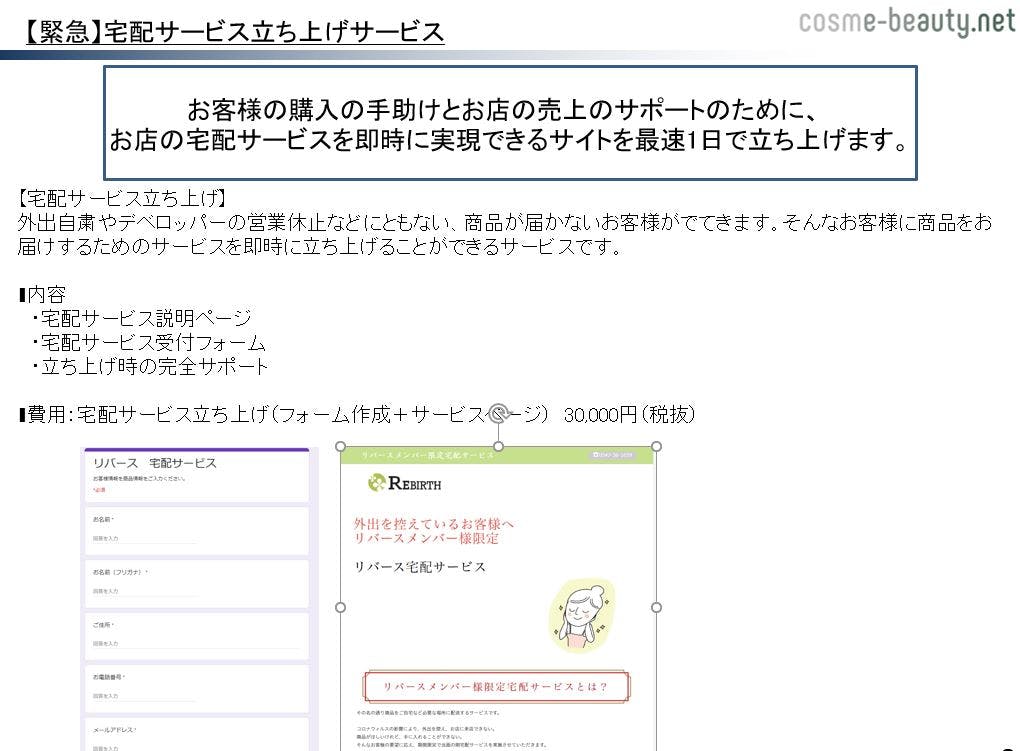 宅配サービスやオンラインで販売する仕組みを即効で立ち上げ、