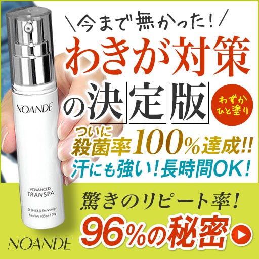今までなかった!と話題のわきが・制汗クリーム ┃ノ┃┃ア┃┃ン┃┃デ┃ 満足度なんと!驚異の97% ☆ <<先着300名様限定【初回限定】特典付 >> ノアンデだけの、2大有効成分配合!とトリプル製法で ワキガ菌99.9999%カット!しかも、汗にも強いから夜まで続く! 乾燥・敏感肌にも使え子供にもOK!