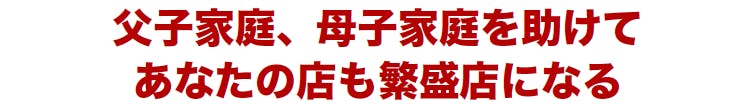 全国の父子家庭、母子家庭の助けになりながら、あなたの店も繁盛するという企画です。もちろん、内容にに納得が行かなければ理由を一切聞かずに500円を返金いたします。