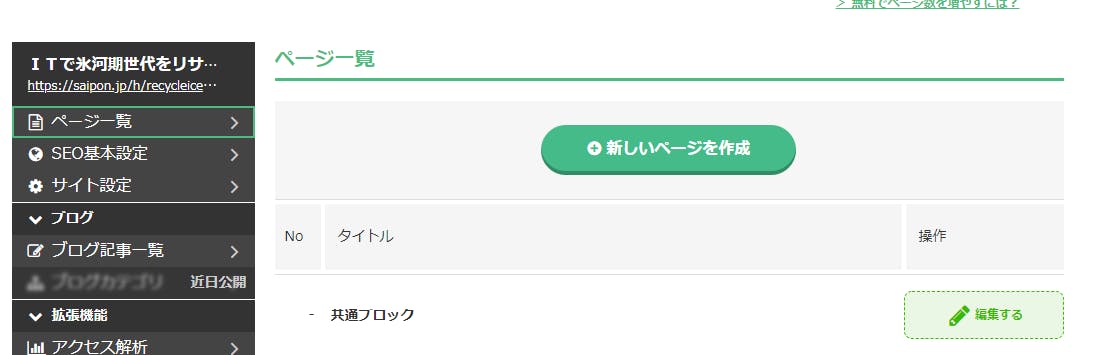 サイポンの管理画面から新しいページを作成を押したらいつもと違うこんな画面になった。